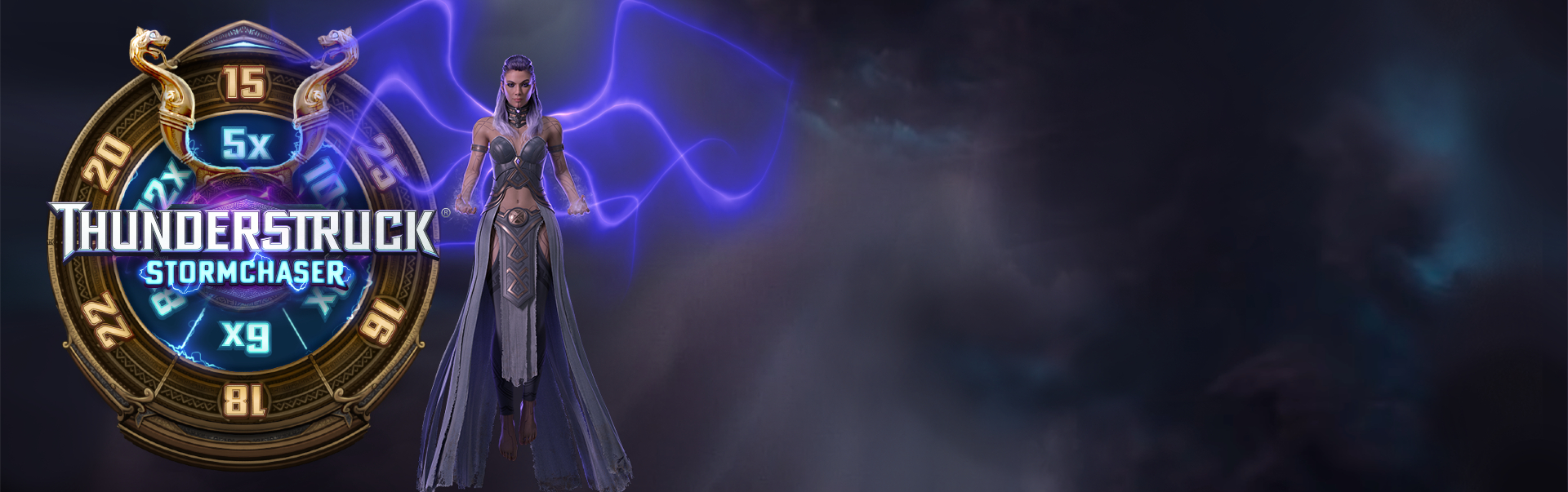 If he can restore the spear to his father, Thor will finally be able to claim his rightful place on the throne of Asgard. Unfortunately for Thor, Thyra, Goddess of Wildstorms, has learned of his quest and is determined to stand in his way. With the power to summon Wildstorms in both the base and Free Spins mode of Stormchaser, Thyra is sure to bring trouble to the reels on every spin.
